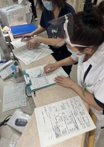 救急センターとHCUでは、電子カルテが使えない状況を想定し訓練を実施しました。